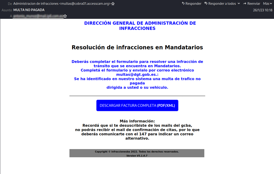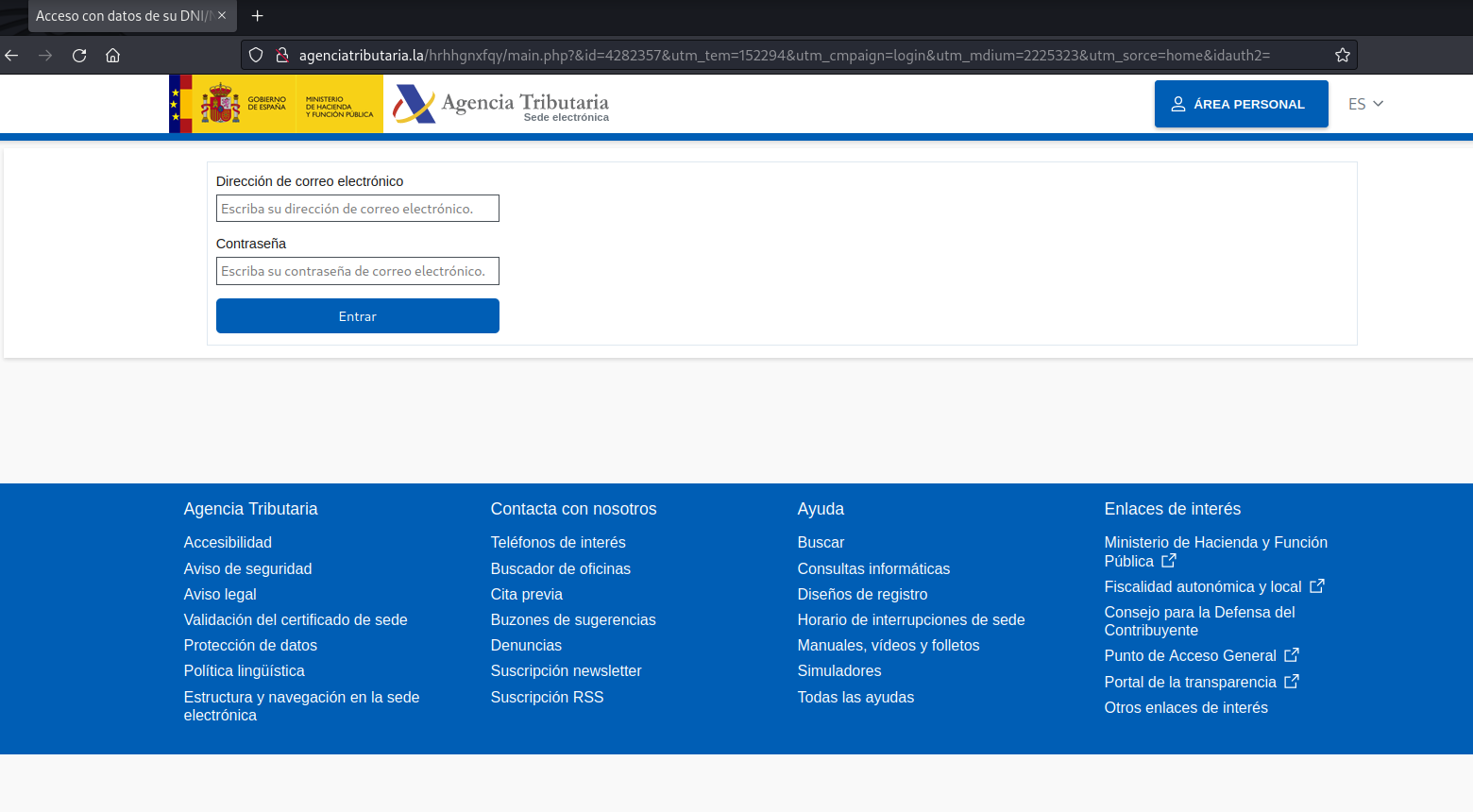 Campaña de phishing suplantando a la Agencia Tributaria