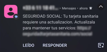 Smishing suplantando a la Seguridad Social que solicita actualizar los datos de tu tarjeta sanitaria