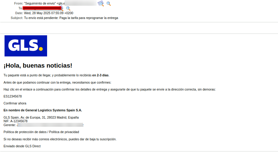 GLS no solicita confirmación de datos por correo para poder realizar una entrega