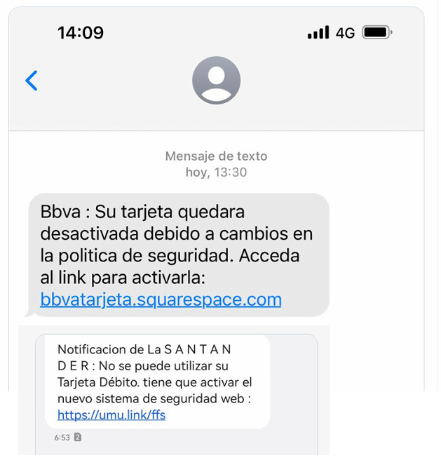 Ninguna entidad bancaria te va a mandar enlaces en sus mensajes de texto. Ahora mismo hay una campaña brutal de "phising" haciéndose pasar por "UnicajaBanco", "Correos", "SEUR" y "@santander_es"