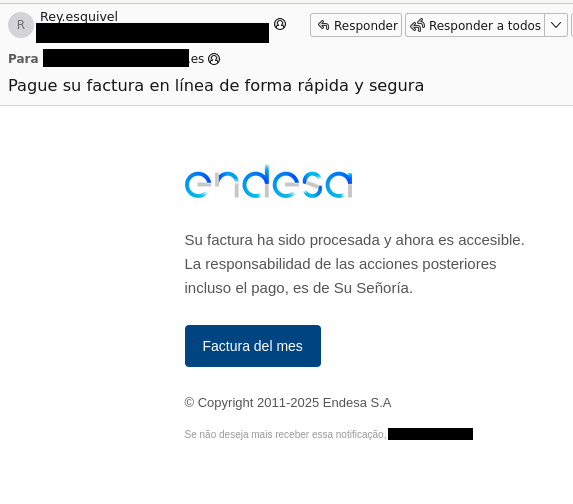 Suplantan a Endesa con el objetivo de instalar un malware en tu dispositivo