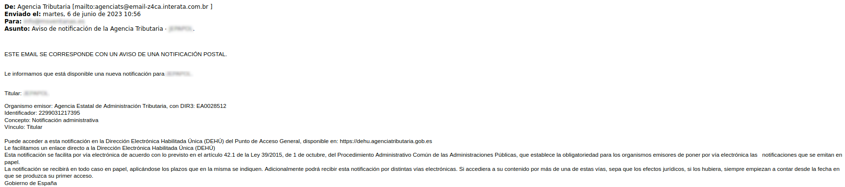[Actualización 07/06/2023] Campaña de phishing que intenta suplantar a la Agencia Tributaria para obtener tu Cl@ve Permanente