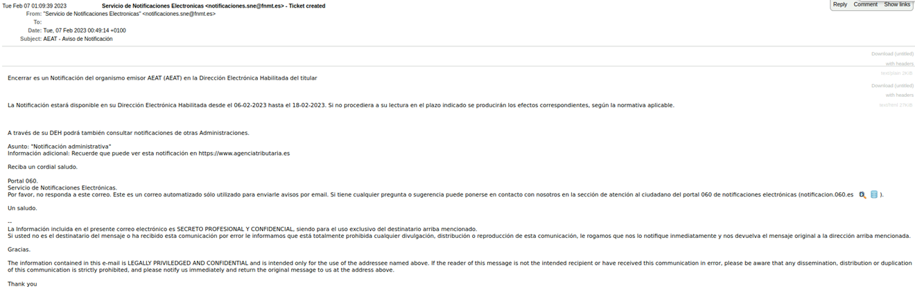 [Actualización 13/02/2023] Campaña de phishing suplantando a la Agencia Tributaria