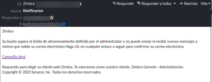 Campaña de phishing que trata de obtener las credenciales del gestor de correo electrónico