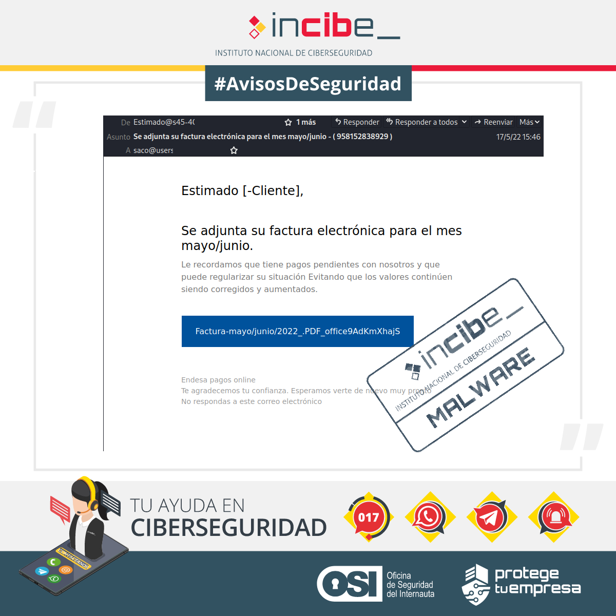 Campaña de distribución de malware a través de factura falsa