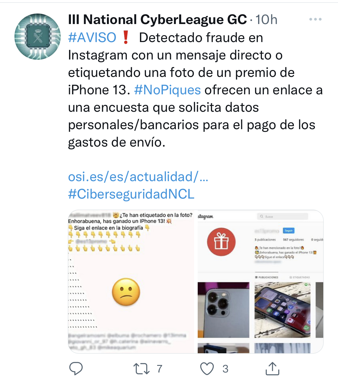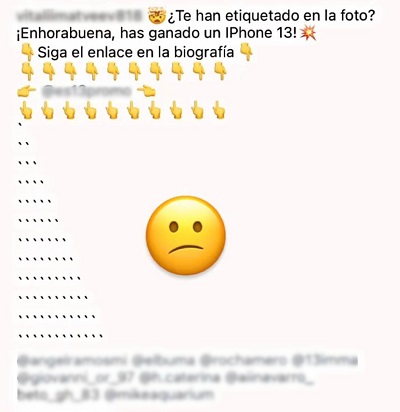 Detectado intento de fraude en Instagram comunicando ser ganador de un iPhone13