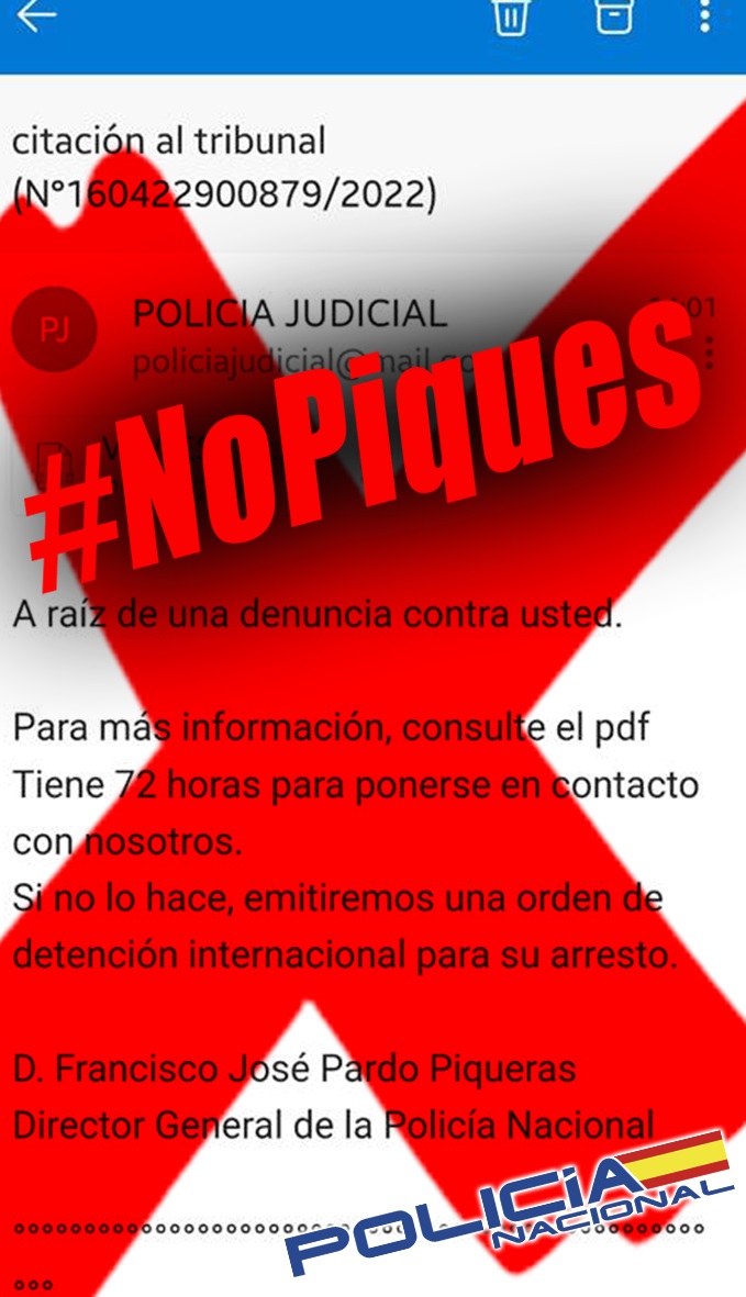 Policía Nacional - No, nosotros no comunicamos ningún tipo de denuncia a través de email o sms
