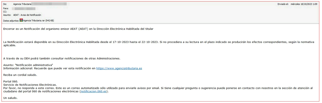 Detectada campaña de suplantación a la FNMT y a la AEAT con la intención de infectar tu dispositivo con un ransomware